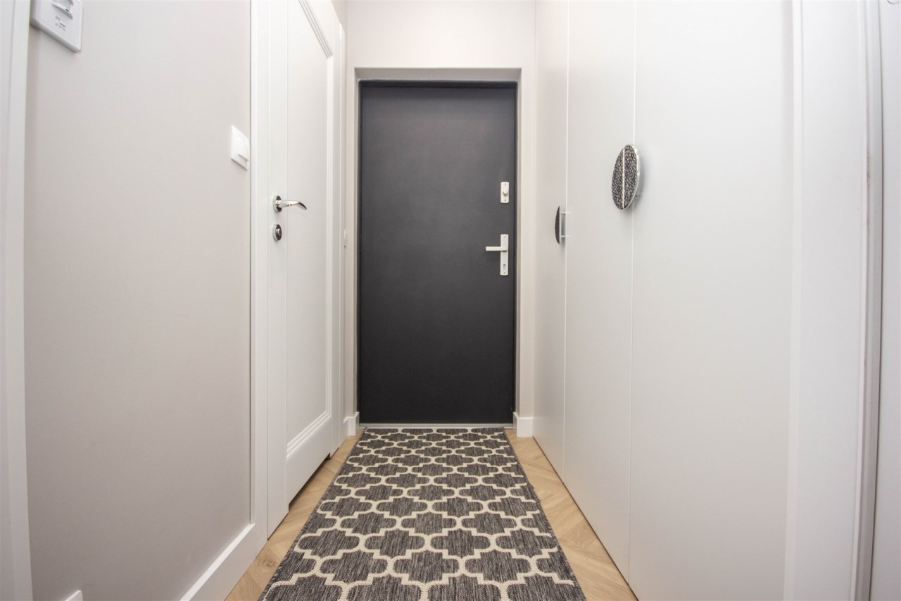 - korytarz z szafa w zabudowie i miejscem do przechowywania