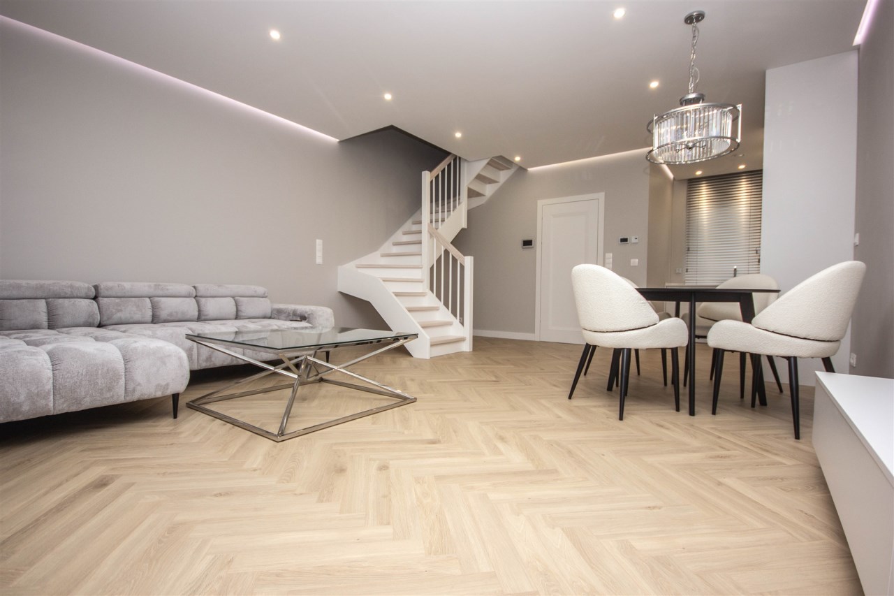 Nowoczesny dwupoziomowy bliźniak, o powierzchni 82m w którego skład wchodzą: