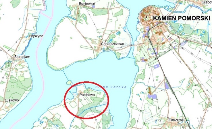 Teren umiejscowiony jest u wylotu rzeki Dziwna do Zatoki Kamieńskiej (jeden z 3 ujść Odry do Bałtyku). Obszar dobrze skomunikowany wodnie z morzem i Zalewem Szczecińskim, drogowo- z drogą krajową do Kamienia Pomorskiego oraz w pobliżu budowanej S3 do Świnoujścia. Teren leży na uboczu głównych dróg prowadzących do morza co gwarantuje spokój, ale na tyle blisko aby można było łatwo dojechać do kompleksu działek drogą asfaltową.