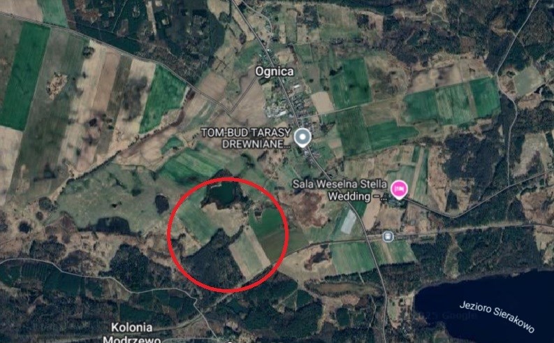 Dojazd drogą polną, uzbrojenia brak, linia energetyczna 400m, odległość od zabudowań wsi Ognica 600m.