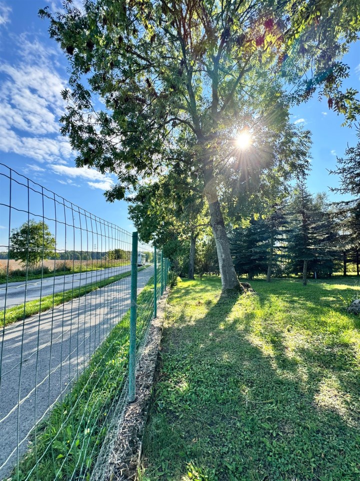 Ułożenie względem stron świata wjazd od północy, ogród od południa. Na działce są przeróżne nasadzenie, wiele jest drzew które dodają dodatkową wartość, której nie kupimy za pieniądze. Budując dom w takim klimacie mamy już w części zagospodarowany ogród.