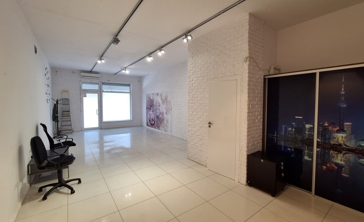 Lokal położony jest w budynku handlowo-usługowym, posiada jedno wejście od frontu. Lokal składa się z trzech pomieszczeń: sali głównej z witryną, magazynu oraz wc.