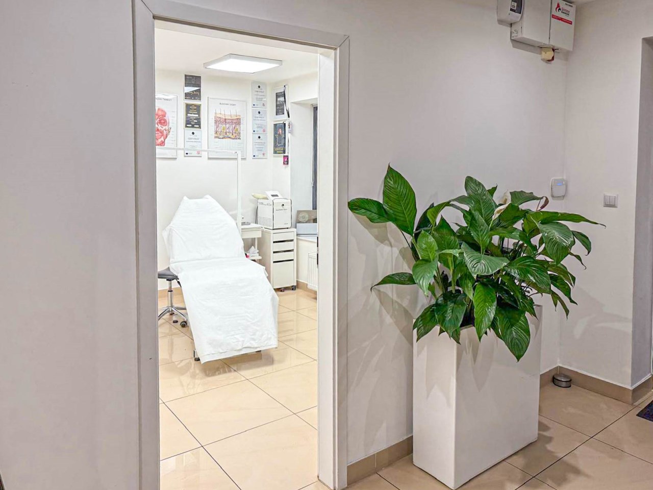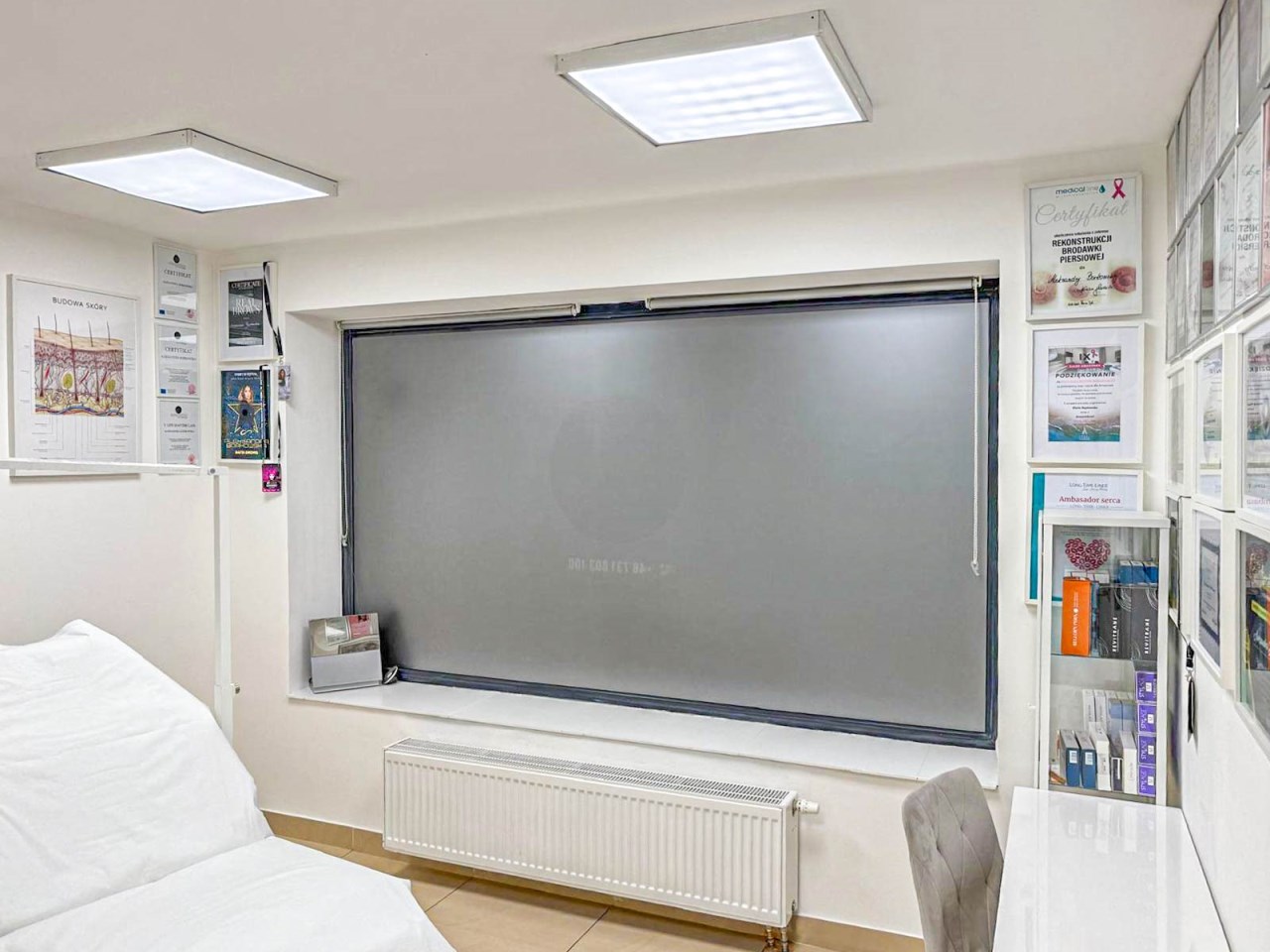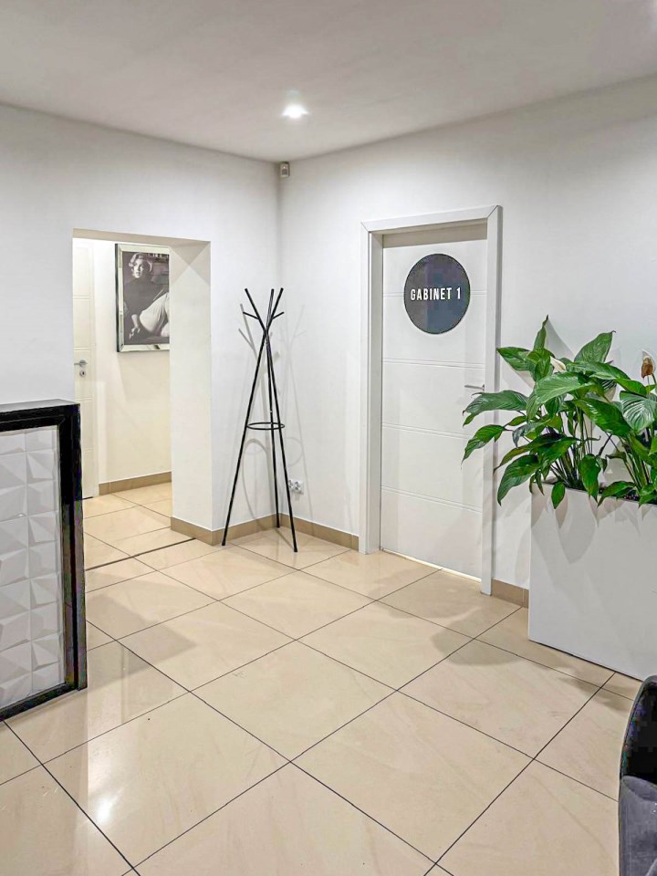 Lokal składa się z recepcji, dwóch gabinetów do których doprowadzona jest woda i kanalizacja, zaplecza socjalnego oraz łazienki. Lokal w bardzo dobrym standardzie, po remoncie generalnym sprzed kilku lat. Na podłodze terakota, ściany gładzone, malowane, nowa stolarka drzwiowa wewnętrzna, nowe witryny, nowe instalacje: wodno-kanalizacyjna, grzewcza i elektryczna.