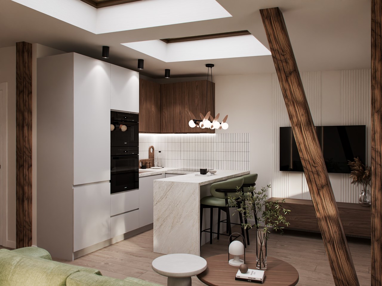 - pokój dzienny z aneksem kuchennym 20,00 m2,