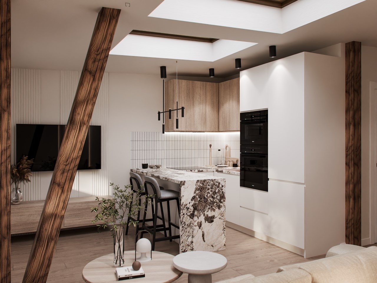 - pokój dzienny z aneksem kuchennym 17,60 m2,