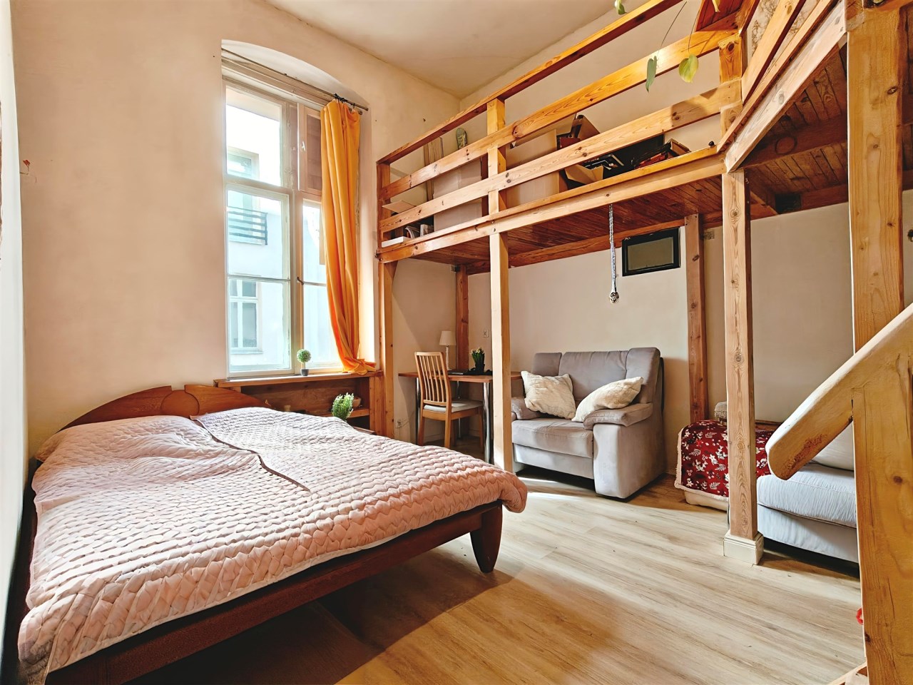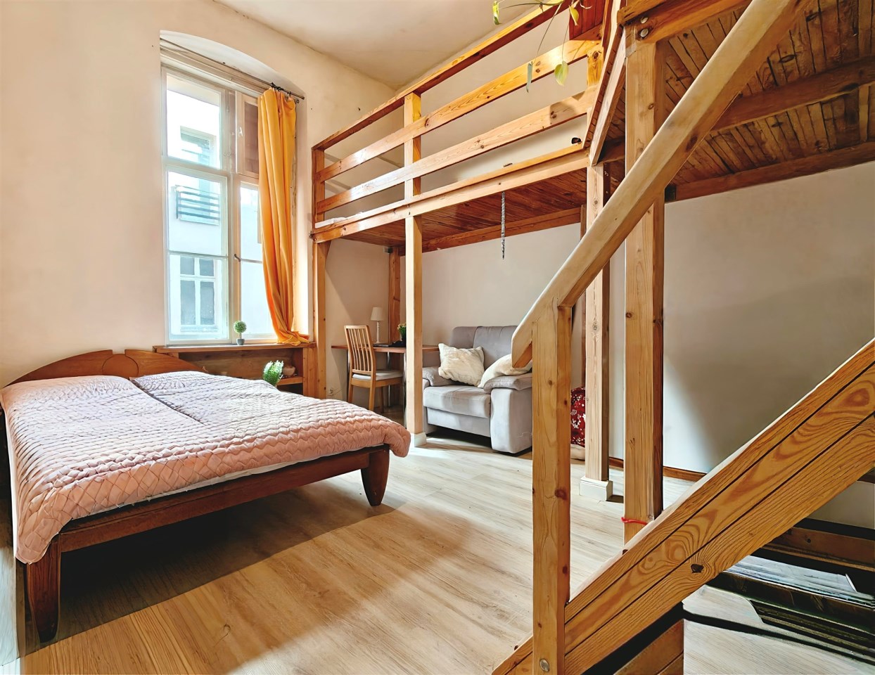 - pierwsze piętro w kamienicy z cegły