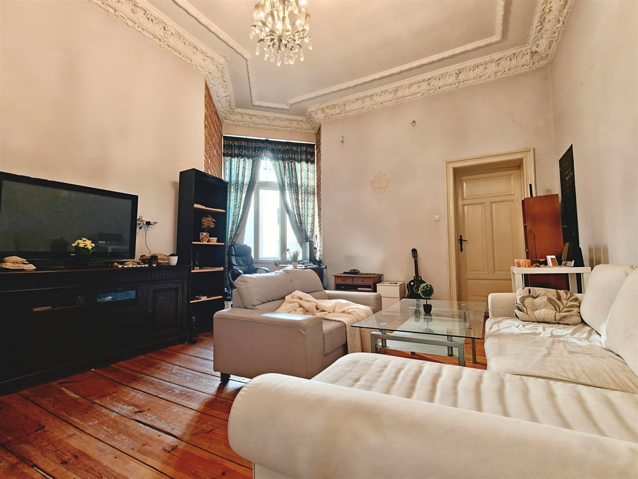 Wnętrze zachwyca, charakterystyczną rzeczą dla starych kamienic jest sztukateria, która tutaj jest zachowana i pięknie się prezentuje. Opłaty za czynsz w mieszkaniu obecnie wynoszą około 350zł miesięcznie. Mieszkanie samo w sobie jest ciepłe ze względu na jego środkowe położenie. Mieszkanie sprzedawane z pełnym wyposażeniem widocznym na zdjęciach, co jest świetną wiadomością dla inwestorów pod wynajem lub osób chcących szybko się wprowadzić.