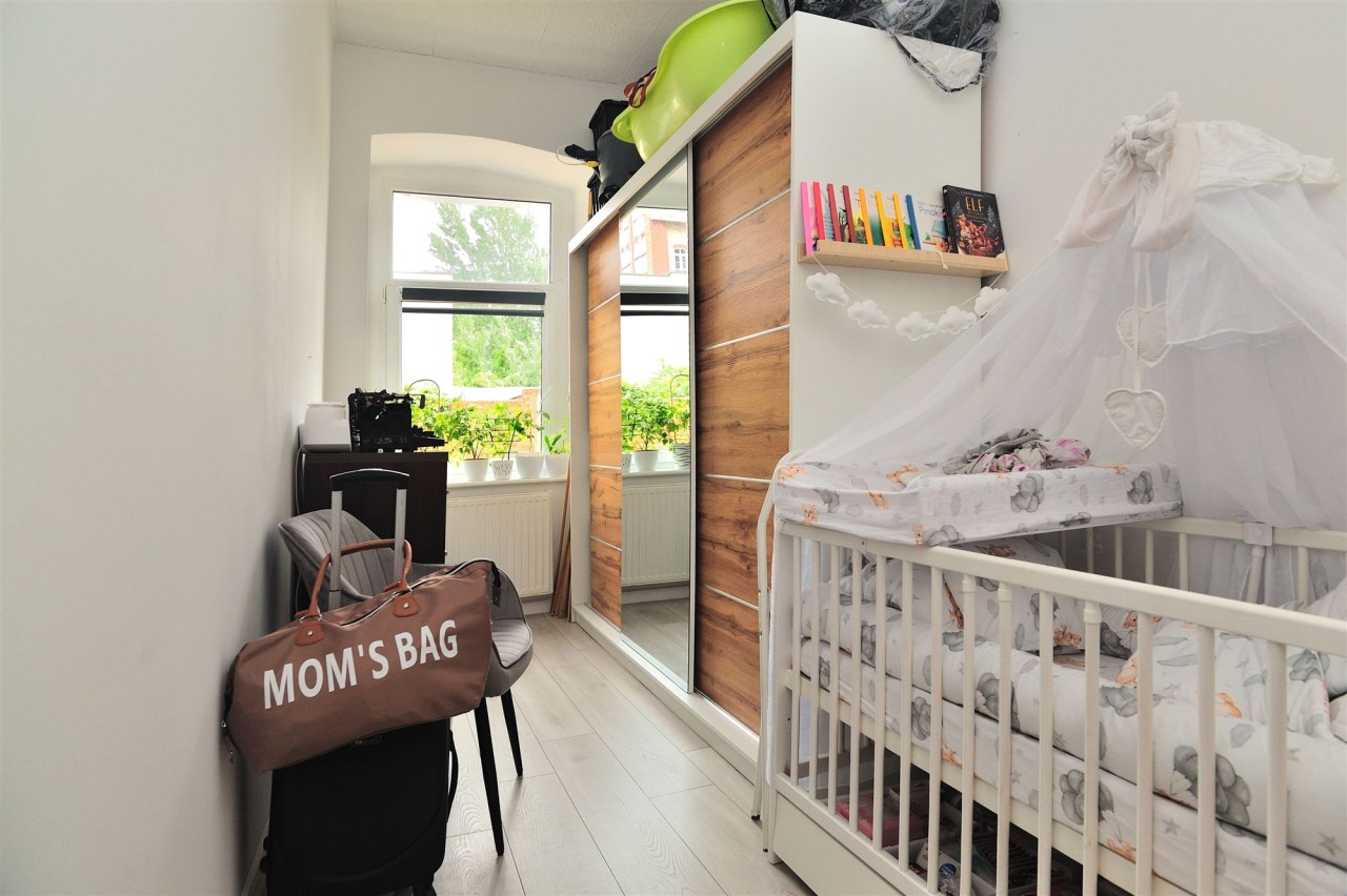 Na powierzchnię 61,6 m2 mieszkania składają się 4 pokoje, jeden z nich stanowi salon wypoczynkowy, pozostałe 3 sypialnie, widna kuchnia z nową zabudową meblową oraz łazienka z wanną. Dodatkowo piwnica o powierzchni 5,75m2