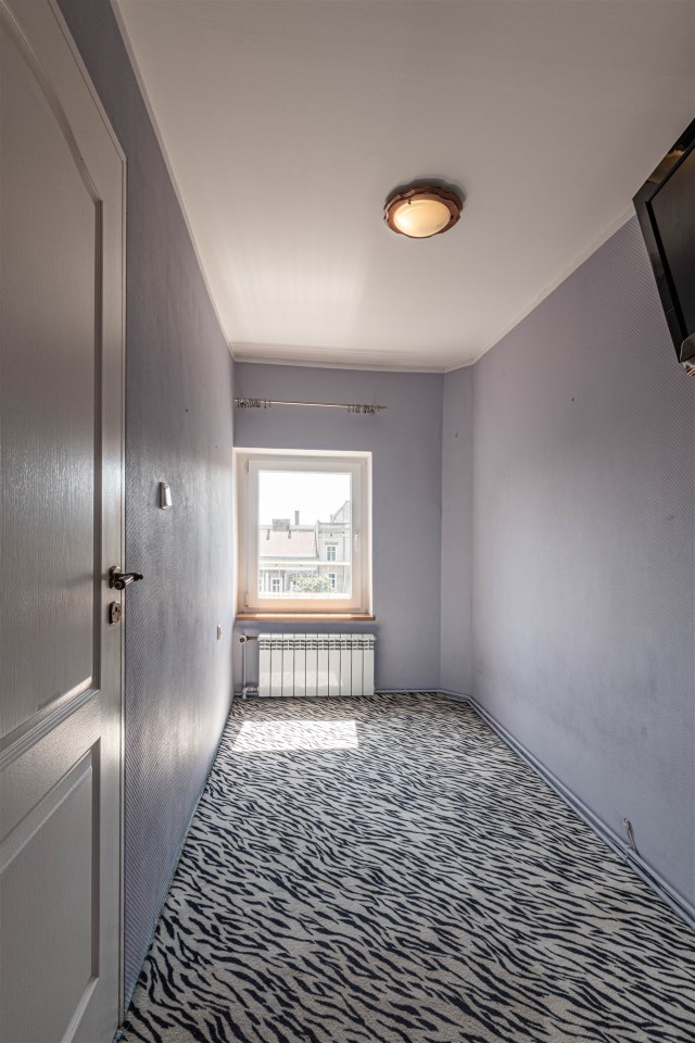 W pokojach wykładzina dywanowa, ściany tapetowane. W aneksie kuchennym, przedpokoju i części pokoju na podłodze terakota. Łazienka razem z wc w glazurze i terakocie, wanna. W przedpokoju duża zabudowa typu komandor.