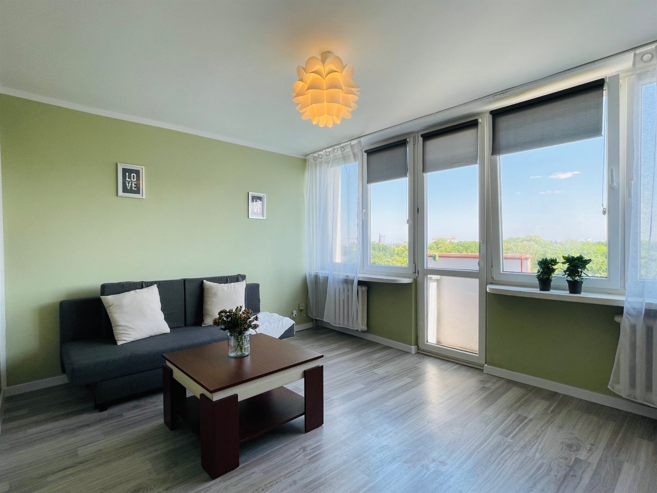 Mieszkanie składa się z dwóch niezależnych, ustawnych pokoi, osobnej kuchni, łazienki z WC oraz przedpokoju. Z okien rozpościera się przyjemny widok na park, co zapewnia poczucie przestrzeni i zieleni mimo centralnej lokalizacji.
