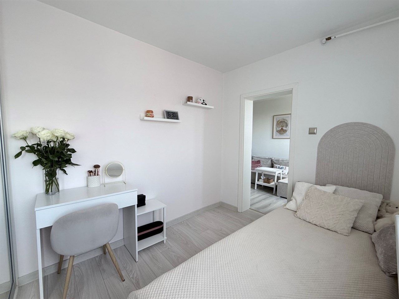 Dużym atutem nieruchomości jest balkon z widokiem na panoramę miasta, który zapewnia świetne doświetlenie oraz przyjemne miejsce do relaksu.