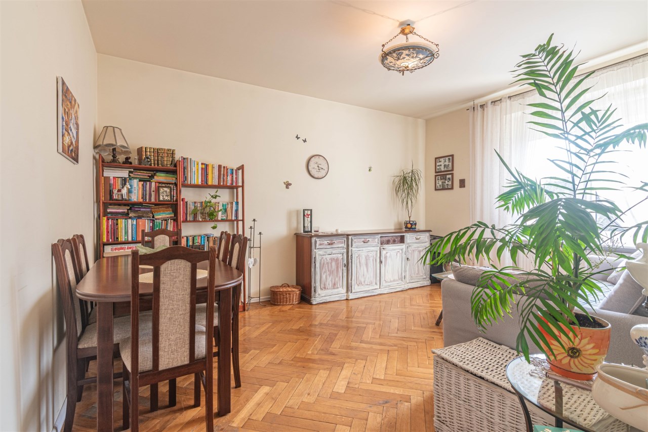 Mieszkanie znajduje się na 2 piętrze trzykondygnacyjnej kamienicy. W pokojach i korytarzu podłogi wyłożone są dębowym parkietem (do odświeżenia). Kuchnia i łazienka przygotowane do własnej aranżacji. Kuchnia o powierzchni 9 m2, bardzo widna z wyjściem na przestronny balkon. Duży pokój (19m2) i kuchnia usytuowane są od strony północno zachodniej, mniejszy pokój (16m2) i łazienka (ok.4,5m2) od południowego wschodu. Mieszkanie jest ciepłe i w większej części słoneczne, co przekłada się na zwroty za ogrzewanie. Wymienione okna PCV oraz instalacja elektryczna, kanalizacyjna i gazowa. W budynku nowe piony wodne i kanalizacyjne.