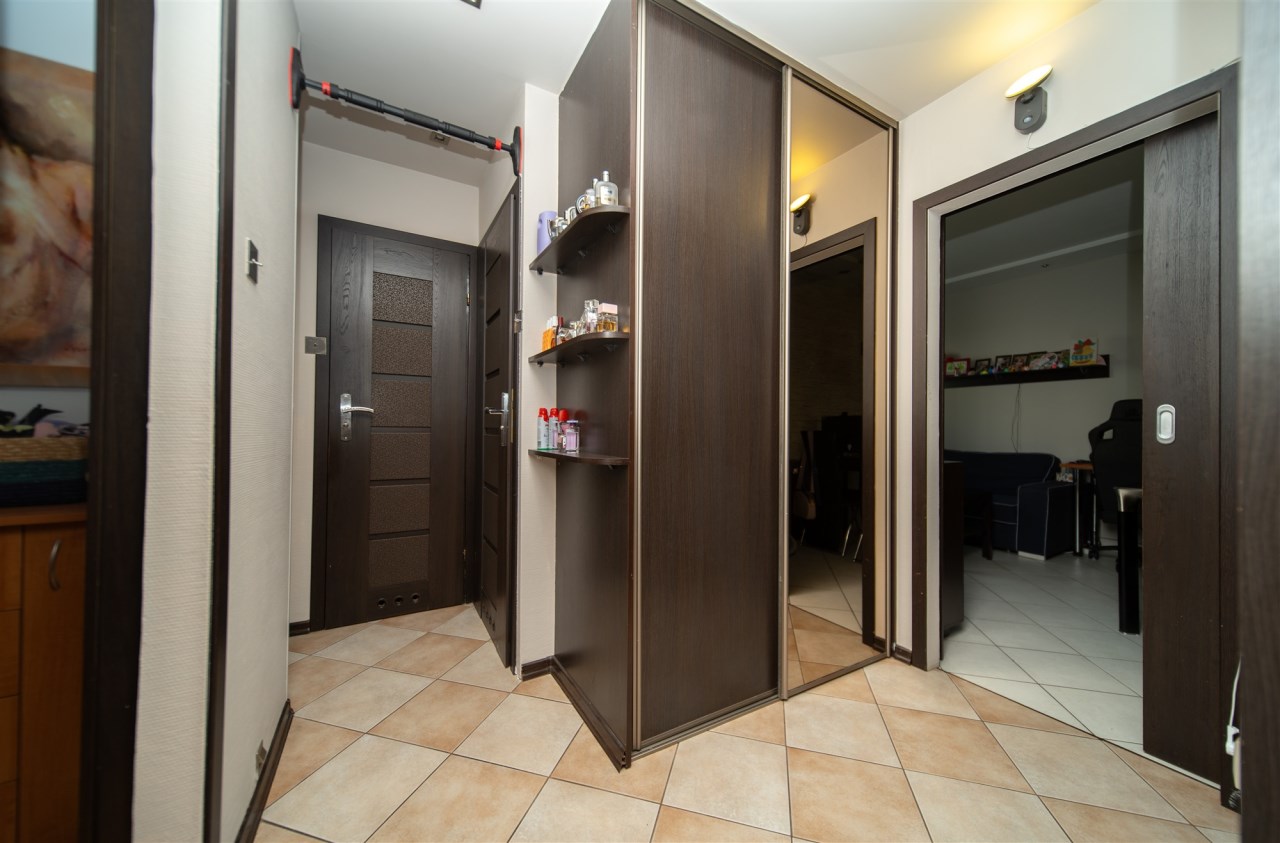 Dodatkowo przedpokój z dwoma dużymi szefami w zabudowie.