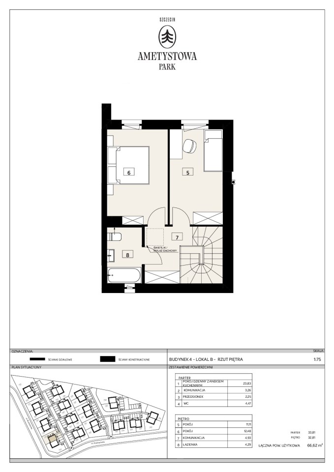 Prezentowany lokal ma powierzchnię użytkową 66,62 m2, liczoną zgodnie z prawem bez wliczania powierzchni pod ściankami działowymi. Do wyłącznego korzystania przez właścicieli jest ogródek o powierzchni ok. 96 m2.
