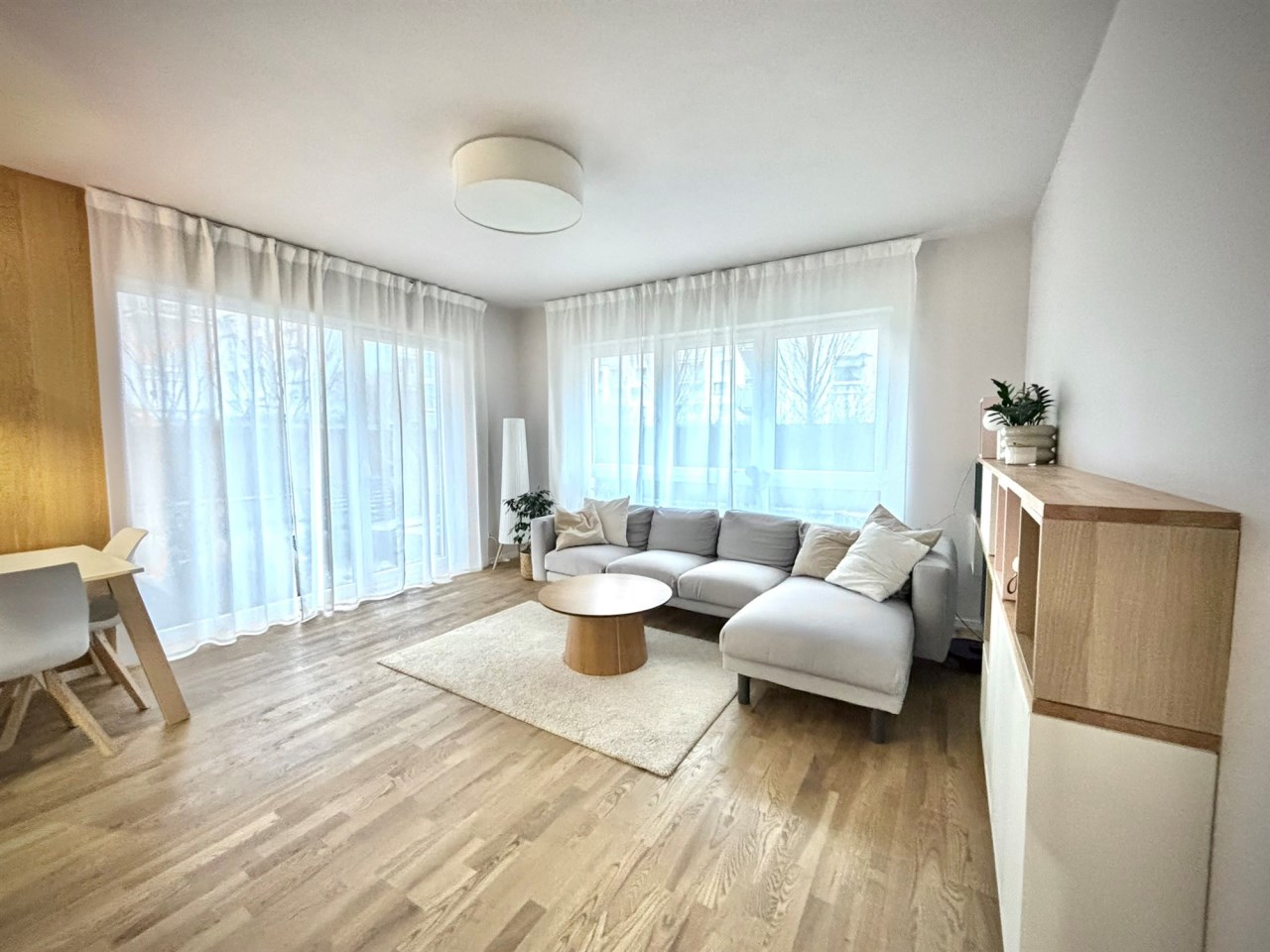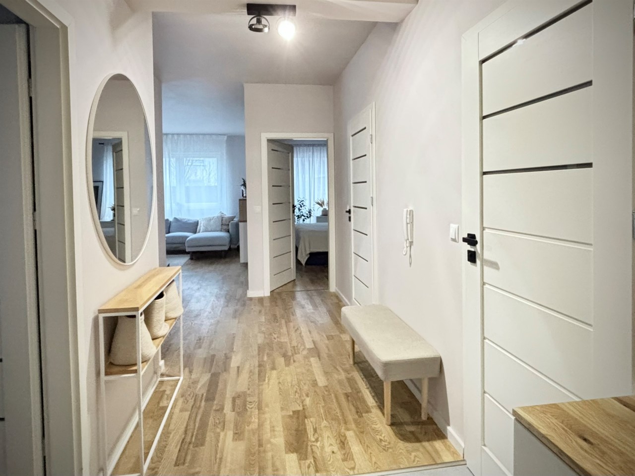Mieszkanie w pełni zaprojektowane przez architekta wnętrz, z naciskiem na funkcjonalność i ergonomię. Wnętrze mieszkania jest niezwykle jasne, a taras zlokalizowany od zachodu jest perfekcyjnym miejscem na spędzanie letnich wieczorów na świeżym powietrzu.