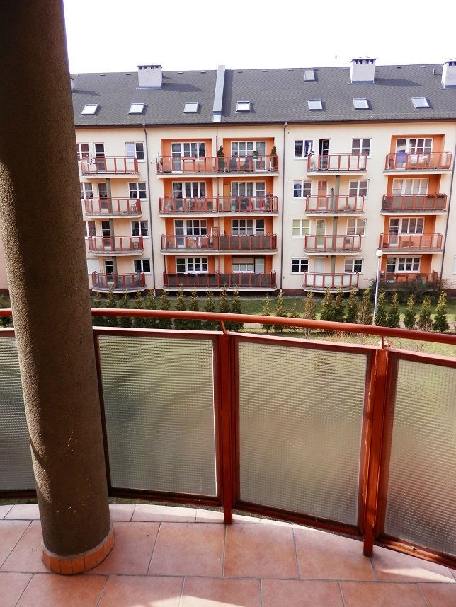 Do wynajęcia ładne i duże 1 pokojowe mieszkanie z balkonem - w świetnej lokalizacji, usytuowane w niskim, nowym budynku z cegły na os. Majowym. Na powierzchnię ok. 41 m2 składają się: salon z wyjściem na duży balkon, obszerna - widna kuchnia z zabudową oraz łazienka z WC, wyposażona w kabinę oraz pralkę. W przedpokoju znajduje się pojemna szafa. Ogrzewanie oraz ciepła woda z nowego, ekonomicznego pieca gazowego.