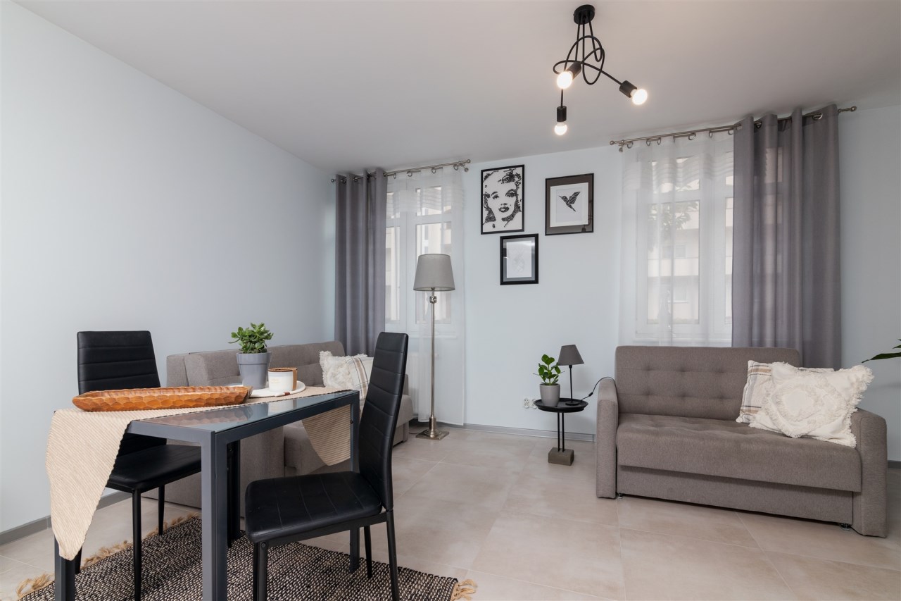 Umowy na internet (światłowód) lub telewizję kablową najemca może zawrzeć samodzielnie. Kaucja zwrotna 2000 zł. Obie sofy widoczne na zdjęciach są rozkładane. Mieszkanie dla jednej lub dwóch osób.