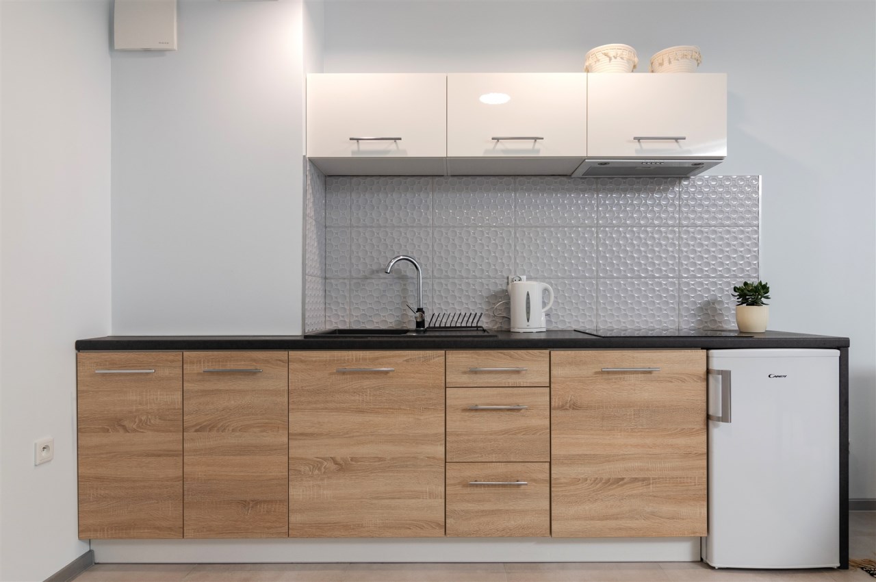 Mieszkanie składa się z pokoju dziennego z aneksem kuchennym oraz łazienki. Pełne umeblowanie plus sprzęty AGD (pralka, lodówka, pochłaniacz, płyta elektryczna, piekarnik) oraz telewizor.