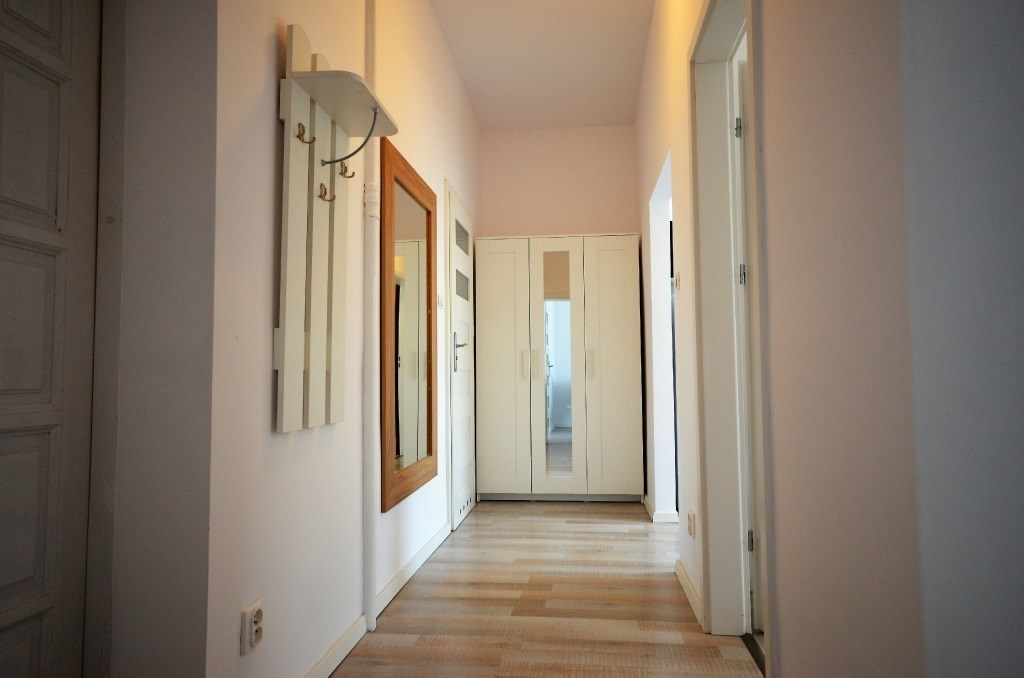 Na powierzchnię 50 m2 składają się 2 rozkładowe pokoje, oddzielna i widna kuchnia, łazienka oraz przedpokój.