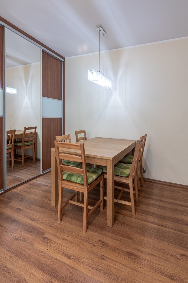 Mieszkanie kompletnie umeblowane, kuchnia wyposażona w sprzęt AGD, w łazience wanna i kabina prysznicowa, pralka. Ogrzewanie i ciepła woda z sieci miejskiej. Czynsz do spółdzielni wynosi 789,82 zł (wraz zaliczkami na ogrzewanie, ciepłą i zimną wodę oraz opłatą za zarząd, fundusz remontowy, itp).