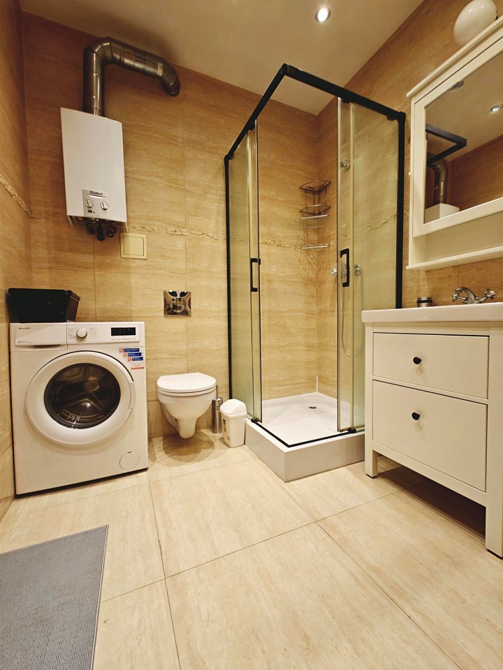 | Wyposażenie łazienki | lustro, pralka, prysznic, umywalka na szafce, WC |