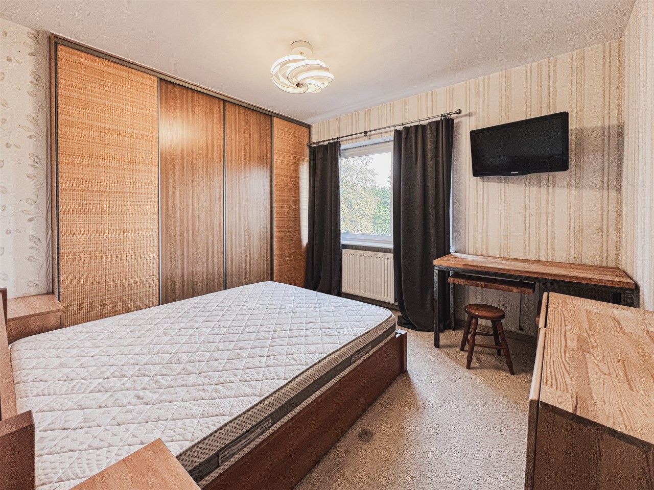 Mieszkanie znajduje się na pierwszym piętrze, a jego okna wychodzą zarówno na ulicę, jak i na podwórko za budynkiem. Mieszkanie przestronne i niezwykle ciepłe.
