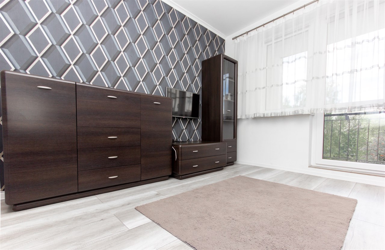 Mieszkanie składa się z trzech pokoi – dużego, przestronnego salonu oraz dwóch oddzielnych pokoi, które doskonale sprawdzą się jako sypialnie, gabinet lub pokój dla dziecka. Kuchnia jest oddzielna i w pełni wyposażona. Znajduje się w niej lodówka, zmywarka, mikrofalówka oraz piekarnik. Kuchnia posiada pojemne szafki, duży blat roboczy oraz wygodny barek śniadaniowy, który dodaje wnętrzu funkcjonalności i komfortu.