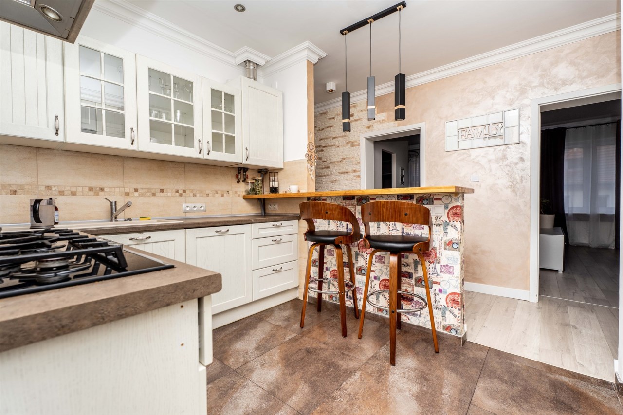 Mieszkanie wykończone w wysokim standardzie z zachowaniem klimatu oraz stylu właściwego dla wnętrz w kamienicach.