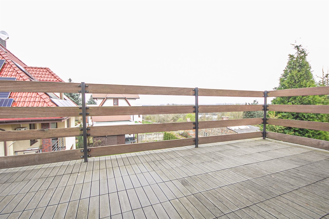 Mieszkanie jest niezwykle jasne i przestronne, widok z okien i tarasu na las i Odrę
