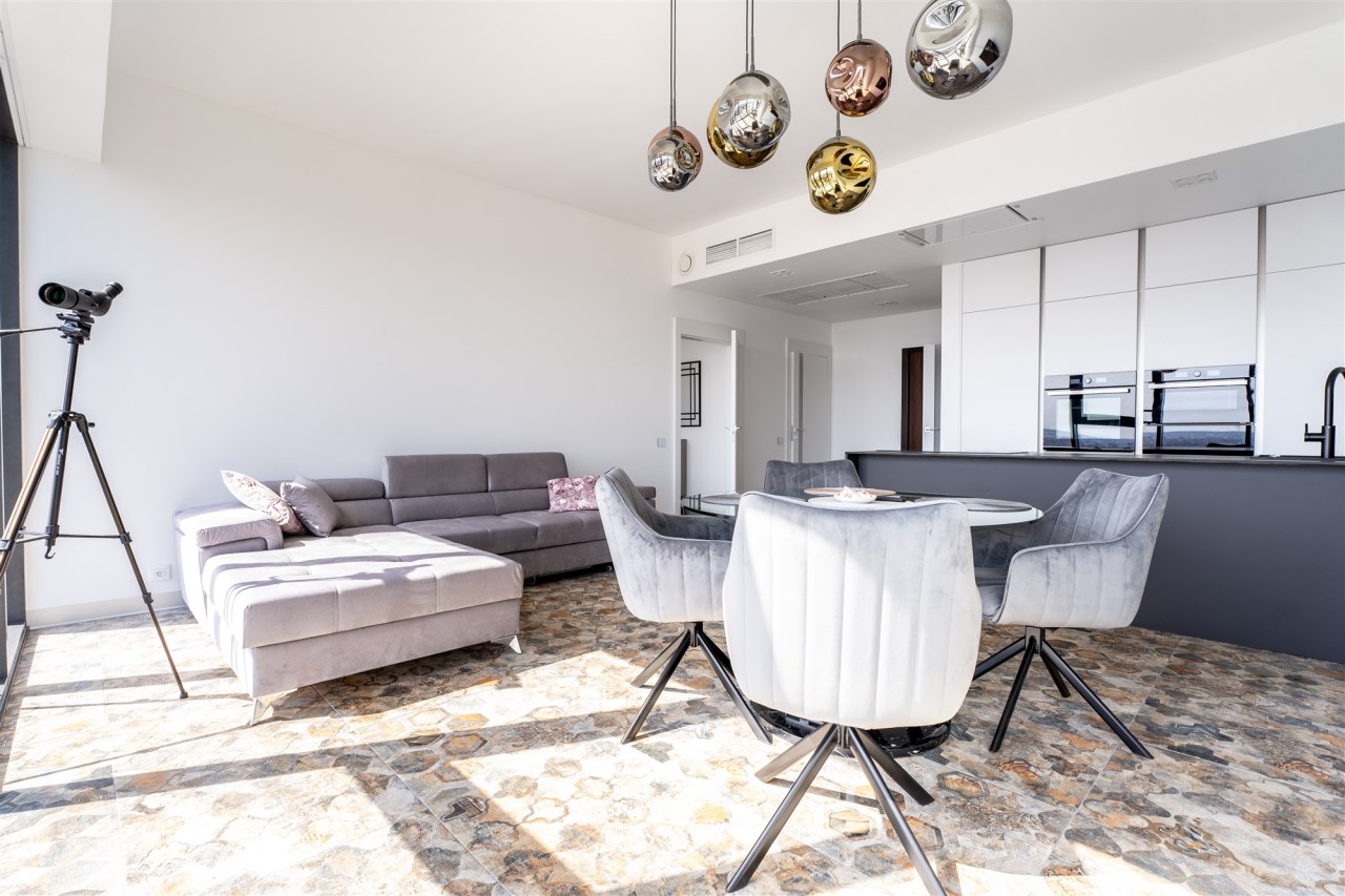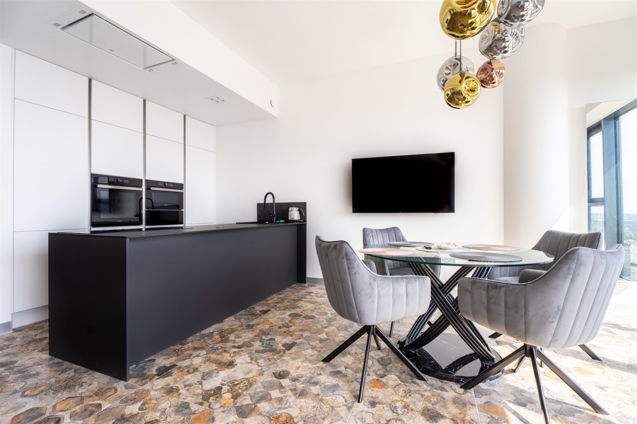 Oferta wynajmu 59 m2 apartamentu w Hanza Tower na 22 piętrze z przepięknym i niepowtarzalnym widokiem na panoramę Szczecina. Mieszkanie wykończone jest w nowoczesnym i spójnym stylu. Wyjątkowo jasne z uwagi na ogromne szklane ściany będące cechą charakterystyczną całego budynku.