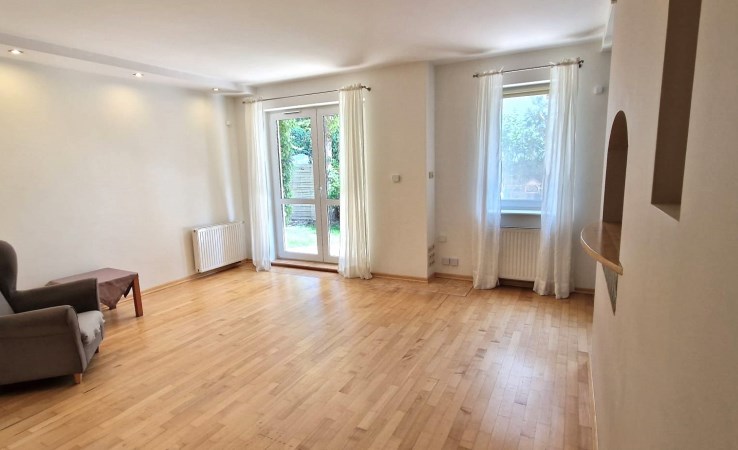 Na powierzchnie 92m2 znajdziemy 3 duże i ustawne pokoje, przestronny salon połączony z kuchnia, łazienkę razem z WC, osobno WC oraz korytarz. Powierzchnia ogródka to około 150 m2. Garaż bezpośrednio w bryle budynku. W całym mieszkaniu zamontowane zostały rolety antywłamaniowe.